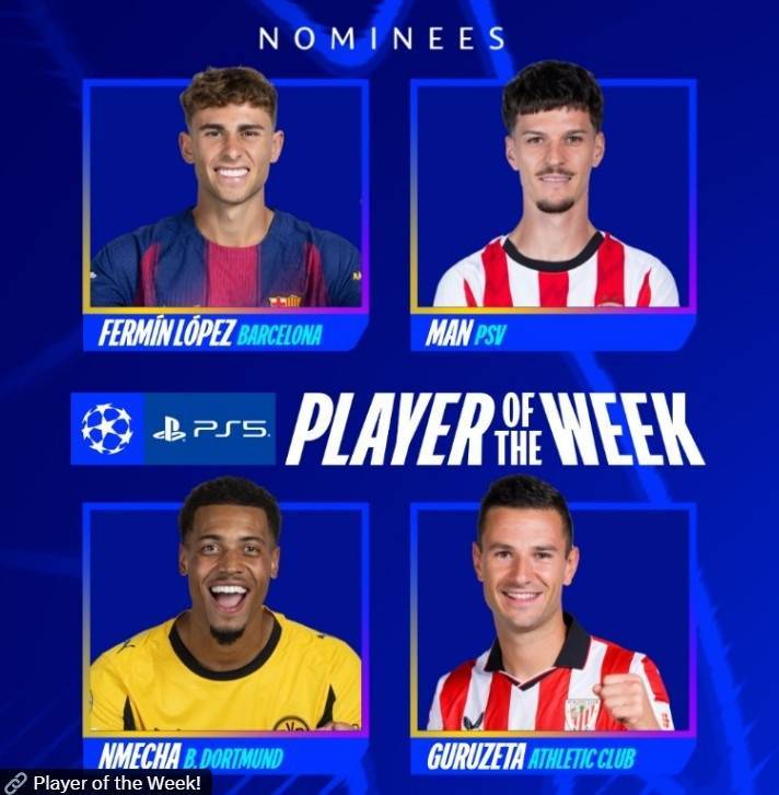 随着投票通道的开启,谁能最终当选本轮最佳球员尚未可知。但无论结果如何,费尔明、恩梅查、丹尼斯 - 曼与古鲁泽塔都已用进球证明了自己的价值,他们在欧冠赛场留下的精彩瞬间,也将成为本赛季欧冠征程中难忘的记忆。